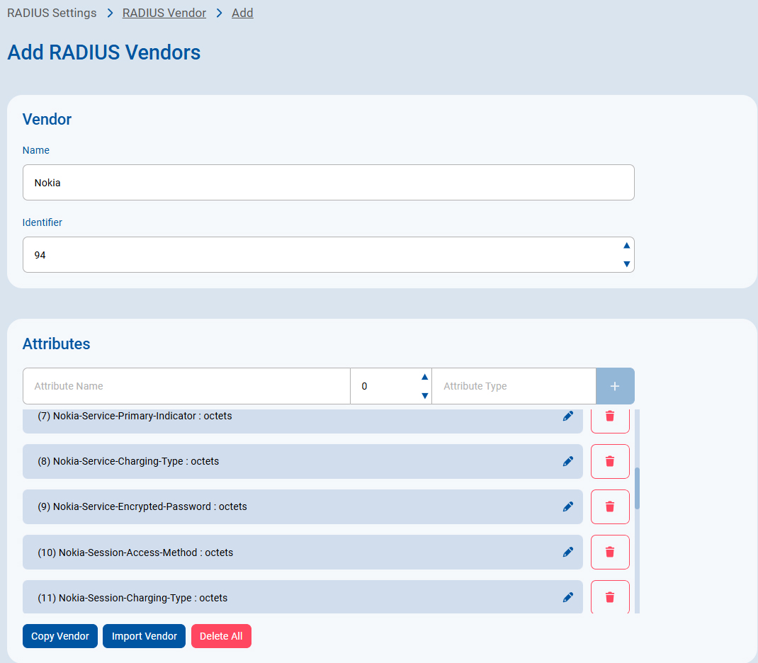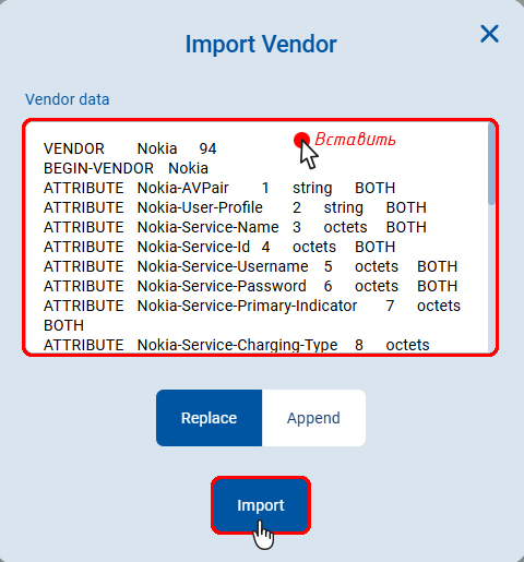 Наиболее удобный способ ввода набора атрибутов RADIUS вендоров через импорт