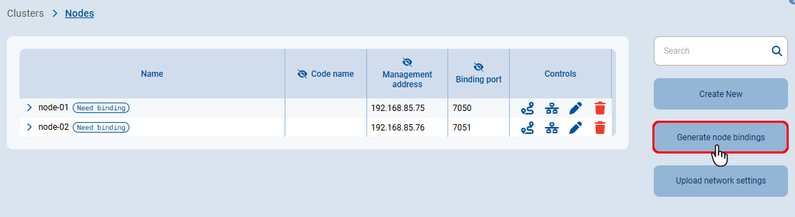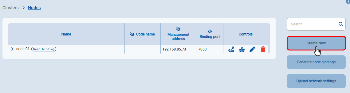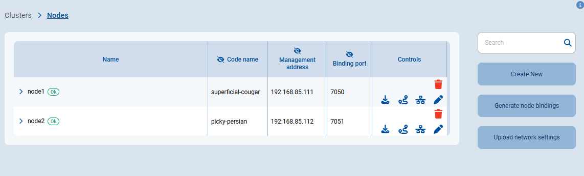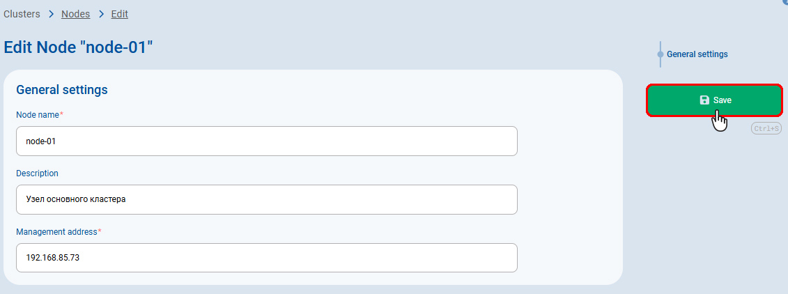 Примечание: После создания нового кластера страница настроек узлов внутри кластера будет открыта автоматически. -