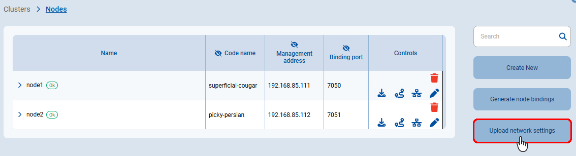 После завершения ввода настроек загрузите сетевые настройки на узлы NGate: