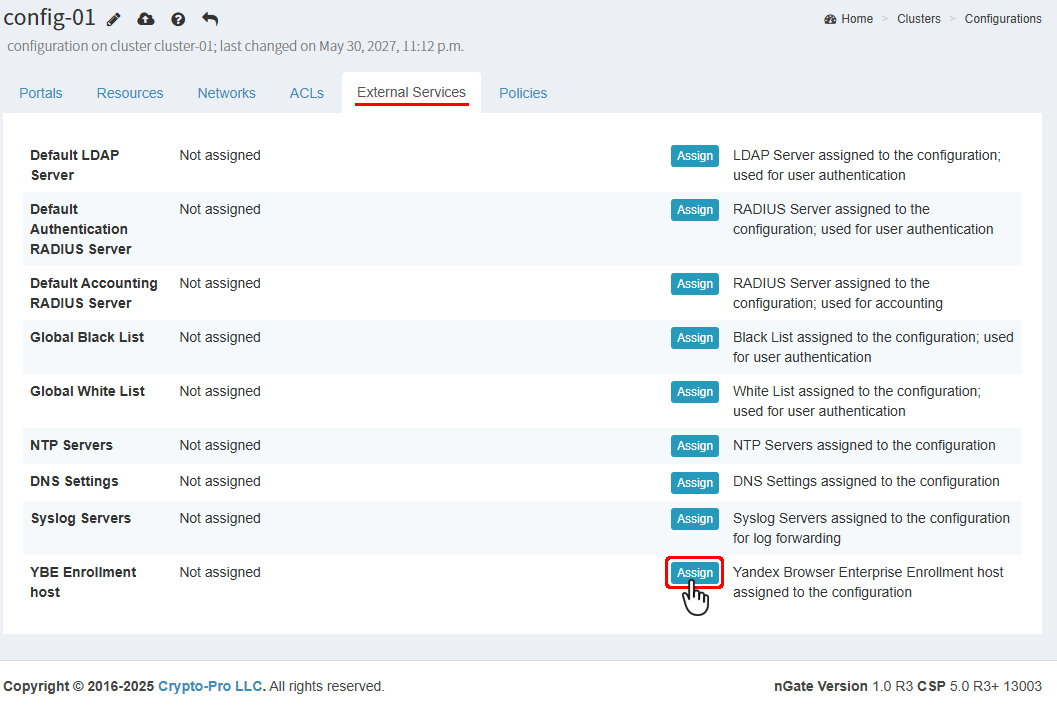 В ПО NGate можно задать хост регистрации корпоративного Яндекс Браузера и привязать к конфигурации.