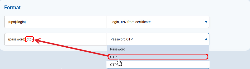 Введите данные требуемые для аутентификации пользователя. В выпадающем меню
