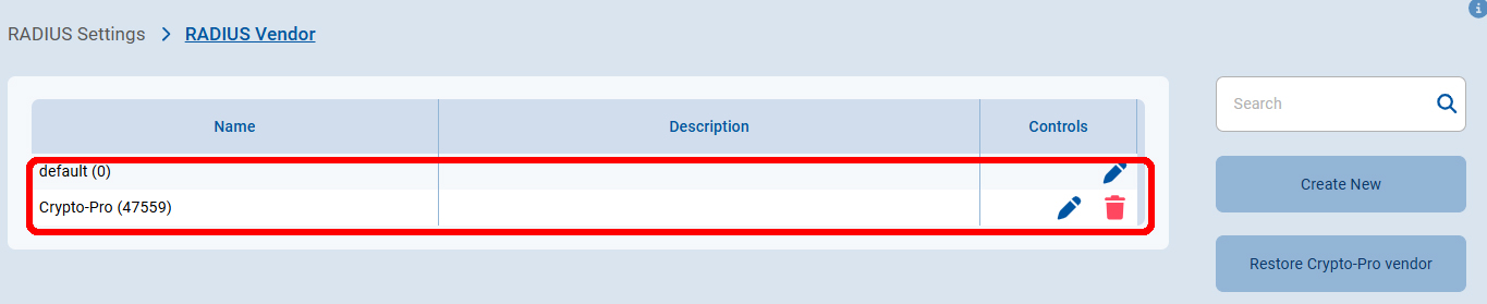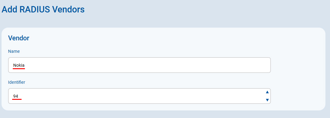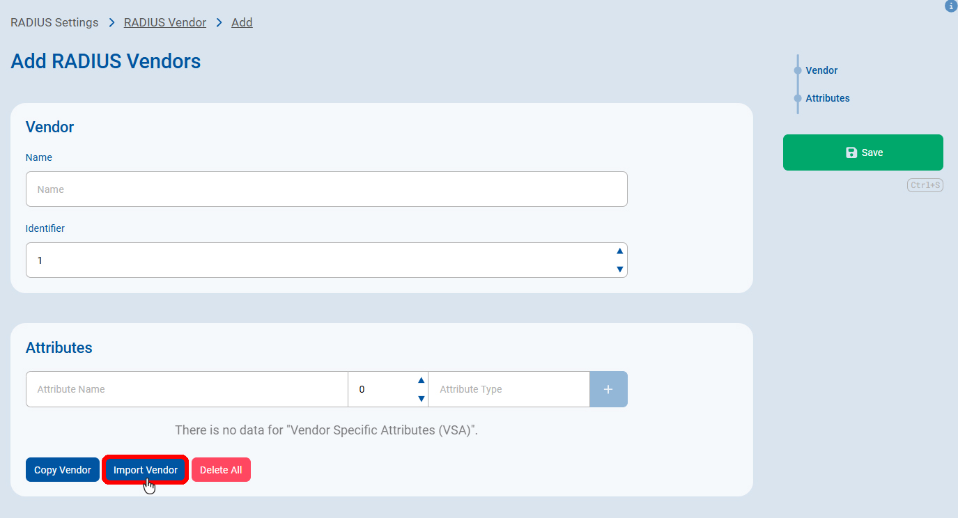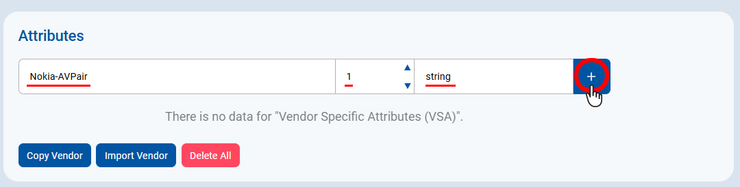Save для сохранения введённых атрибутов RADIUS вендора.