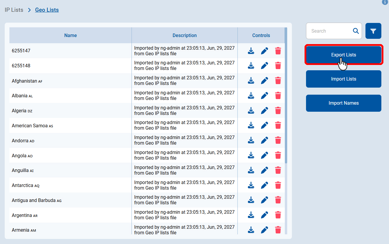 Откройте страницу работы со списками наборов IP-адресов GeoIP: .